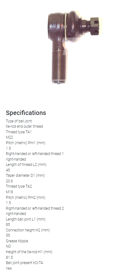 Końcówka drążka kierowniczego (przegub kulowy) do wózka widłowego TOYOTA z serii 5 oraz 6. Pasuje do wózków z tonażem 3t. M20x1,5 /PRAWA/