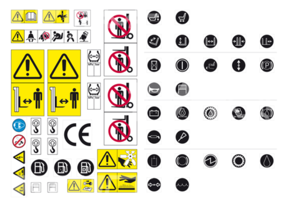 Komplet naklejek ostrzegawczych do wózka widłowego.