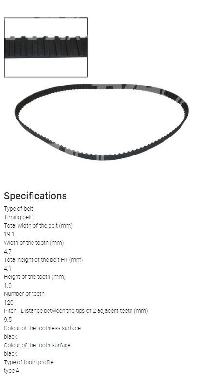 Pasek rozrządu do wózka widłowego MITSUBISHI, CLARK z silnikiem MITSUBISHI 4G33. Typ B - ząb TRAPEZ.