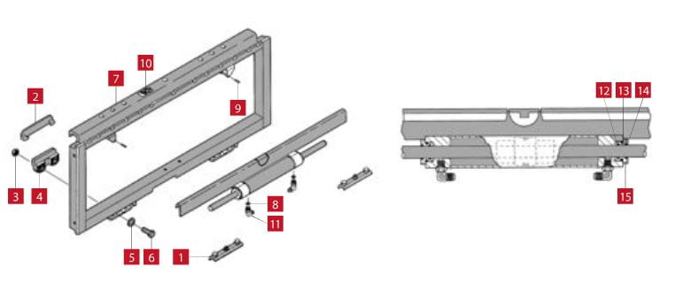 Ślizg przesuwu bocznego CASCADE 55F /góra/. Typ B montowany po 1999r. Na schemacie pozycja nr 1.
