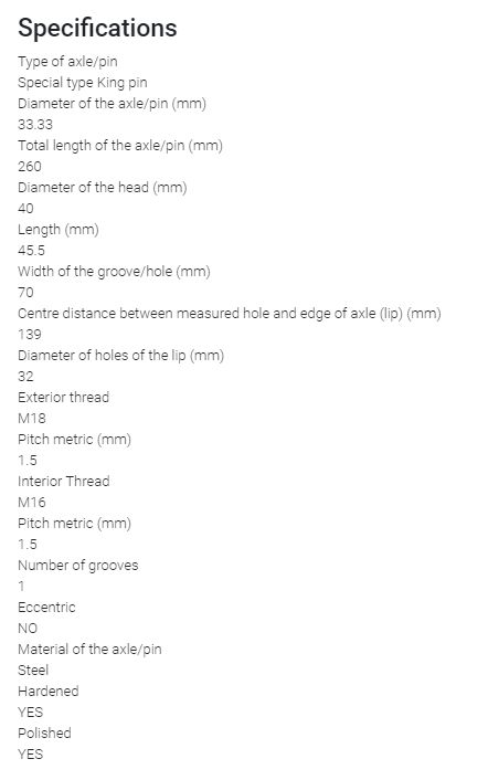 Sworzeń zwrotnicy do wózka widłowego LINDE 325, 337, 351, 392, 393. Na schemacie pozycja 8.