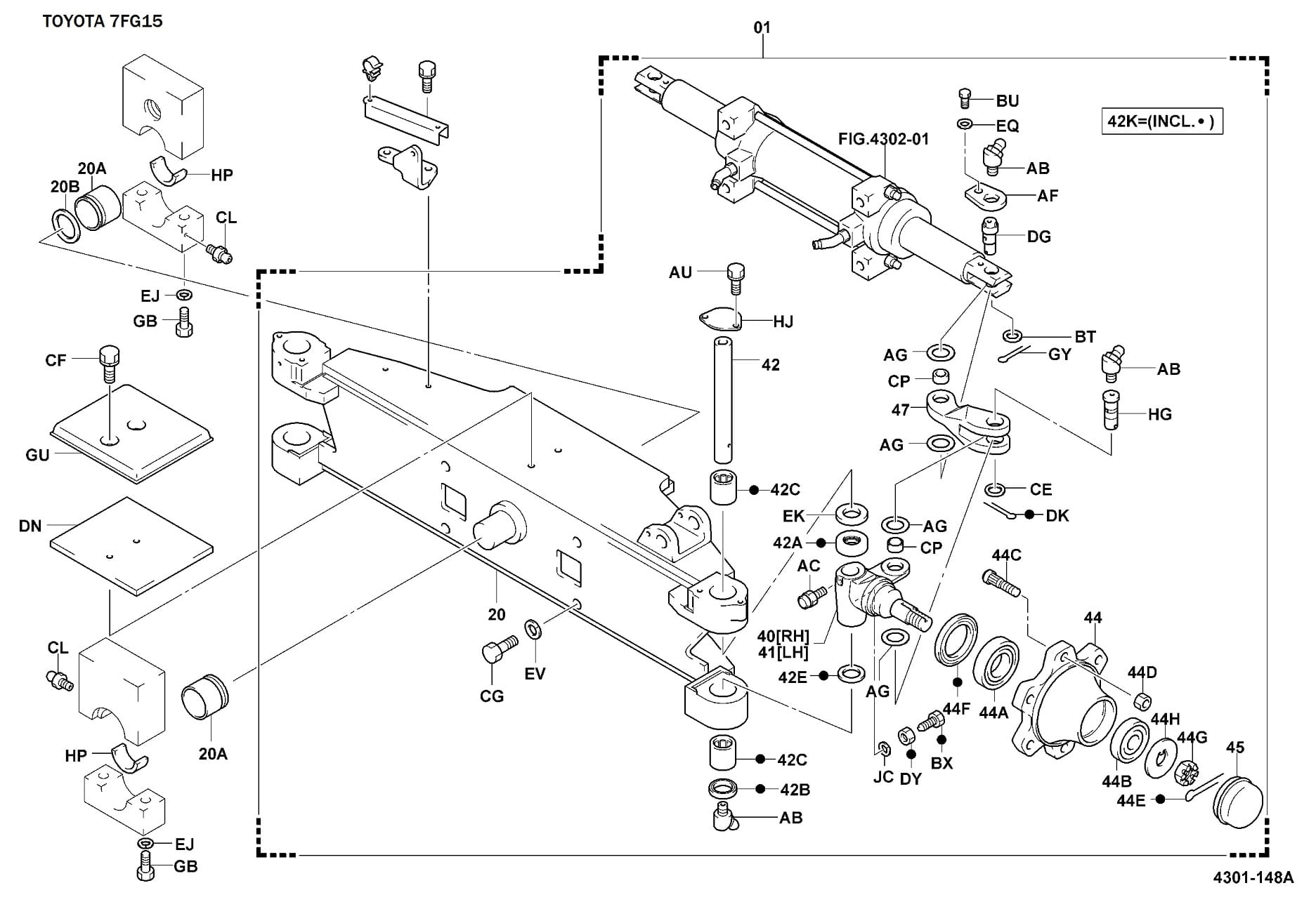 Uszczelnienie piasty do wózka widłowego Toyota. Pasuje do tonaży od 1 do 3 ton. Na schemacie pozycja 44F.