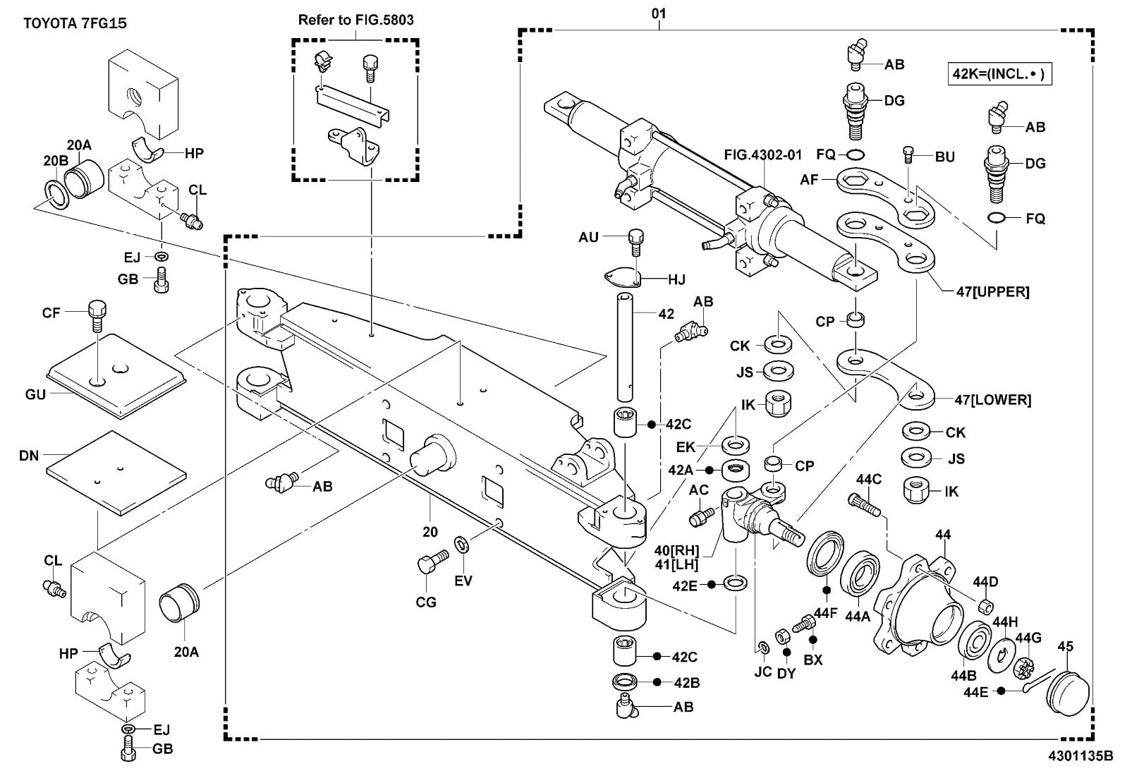 Uszczelnienie piasty do wózka widłowego Toyota. Pasuje do tonaży od 1 do 3 ton. Na schemacie pozycja 44F.